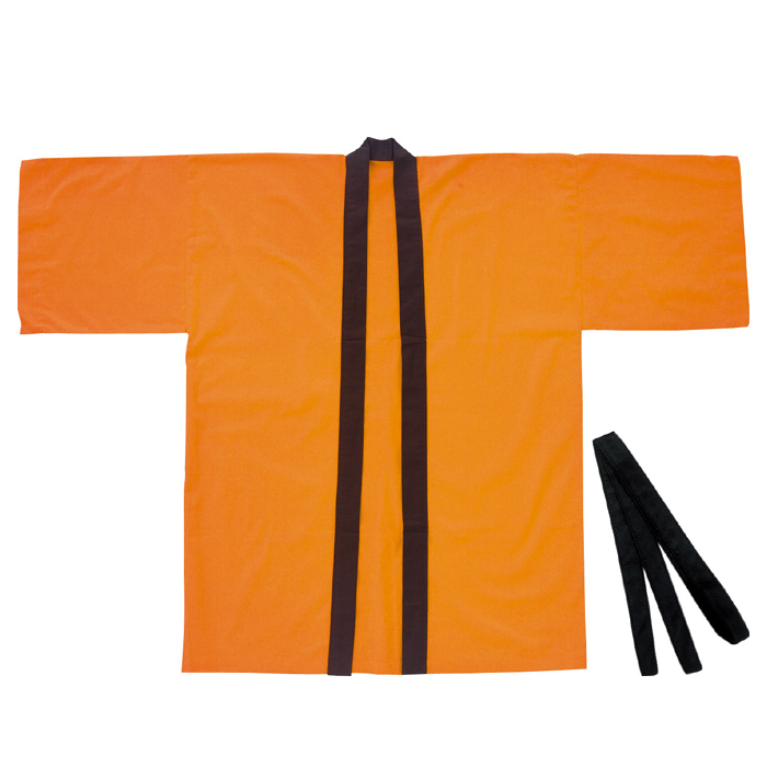 ソフトサテンロングハッピ袖付 黒L ハチマキ付 |