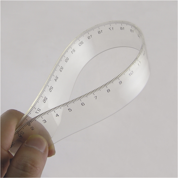 お子様でも安全に使える軟質タイプの定規です。自由に曲げられるので、曲面や球体のものを測ったりする事も出来ます。フルカラー名入れ対応商品です。