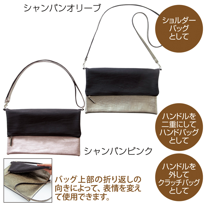 洗練されたバイカラーデザインで3WAYに使えるショルダーバッグ。ショルダーバッグとして、ハンドルを2重にしてハンドバッグに、ハンドルを外してクラッチバッグで。