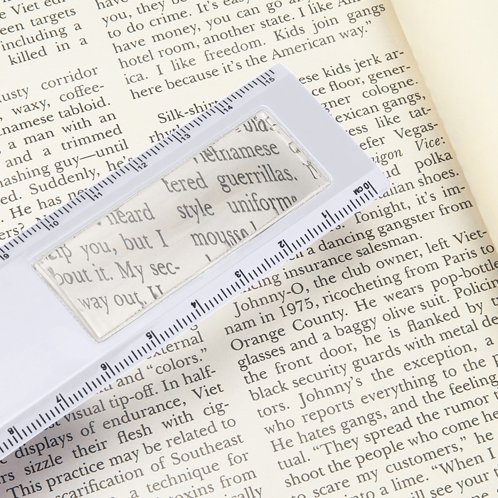 15cmスケール、ブックマーククリップ、ルーぺなど多機能な定規です。