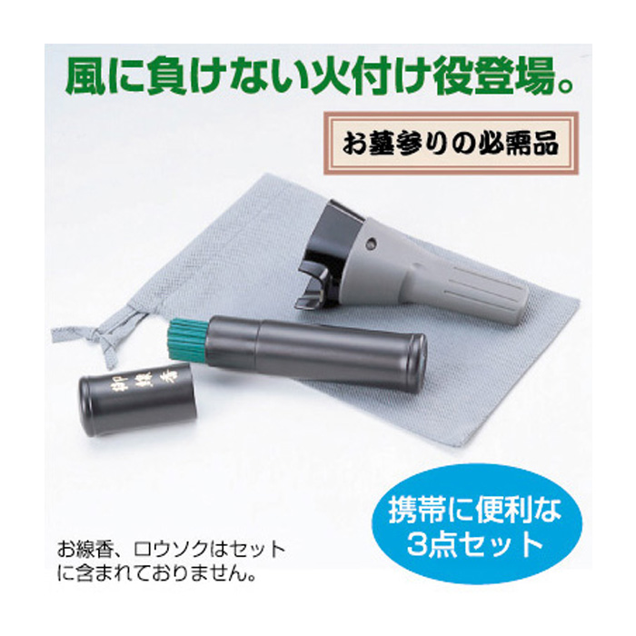 風よけライター/78×49×135mm・線香ケース/φ35×160mm・ポーチ/150×225mm 114g |