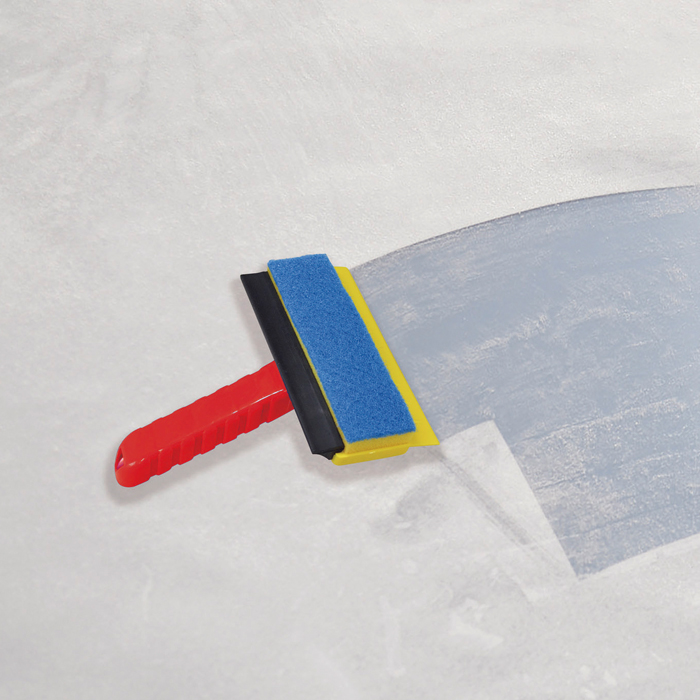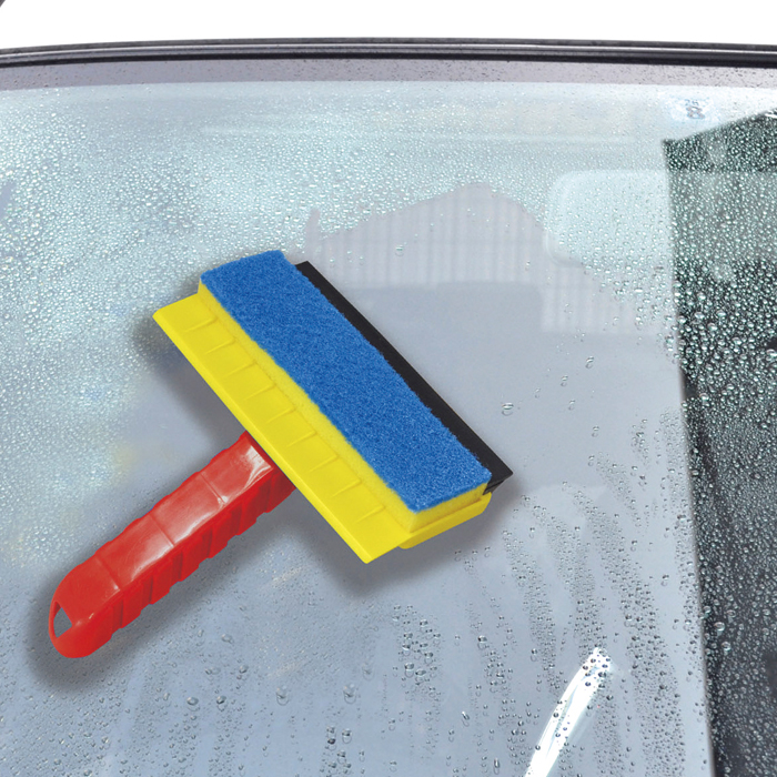 便利な3機能。窓のお掃除・汚れ落しに便利な汚れ取りスポンジ!お掃除後の水切り、結露落しに最適な水切りワイパー!霜取り・ガラスの雪かきに役立つシモトリスクレーパー!