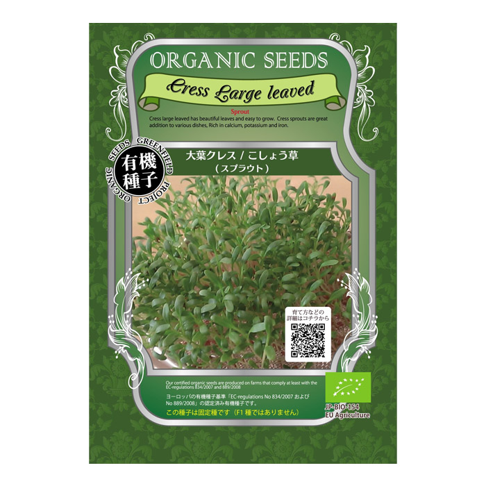 やわらかくビターテイスト。肉・魚料理の付け合わせに最適です。チアシードは栄養豊富なスーパーフードと言われています。チアシードに含まれるオメガ3(αリノレン酸)は、代謝を促進したり、コレステロールを下げる働きがあり、高血圧や糖尿病の予防にも効果的とされています。また、アレルギーを抑制する効果もあると言われています。食物繊維も豊富なので、便秘解消やデトックス効果が期待されます。日本ではまだ珍しいチアシードのスプラウトをオーガニックの種で!栽培期間の目安は1週間程度。この種子は、世界の有機基準でも厳しいとされるヨーロッパ有機認証を取得しています。種子を育成、生産する過程においても、農薬や化学肥料を使用せず、環境への負荷をできる限り低減して生産されています。健康関連事業や環境関連事業の販促品としてぜひご活用ください。※パッケージサイズ、デザインは予告なく変更する場合がございます。