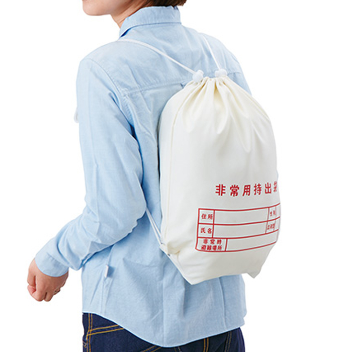 避難場所・住所・氏名を記入できる両リュック・非常用持出袋です。常日頃から準備で安心。非常時に役立つチェックリスト付!10枚単位でポリ袋に入れてお届けします。