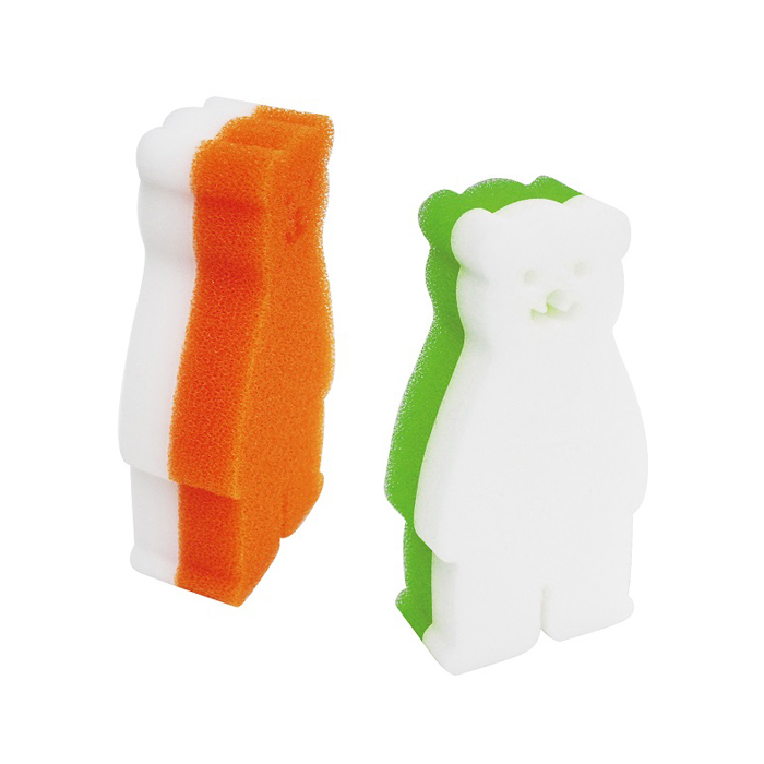 通常のスポンジとメラミンスポンジがひとつに。自立するのでぬめりにくく、場所もとらないため便利なスポンジ。食器洗いやシンク周り、お風呂掃除まで広く活躍するかわいいクマさんスポンジ。