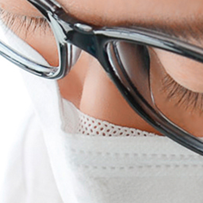 眼鏡が曇りにくい「アンチフォグ加工」でピッタリフィットが持続!マスクの内側に二重メッシュの折返しをつけることで、呼気漏れを軽減。ノーズピースにアルミバーを採用することで、強力形状キープ!