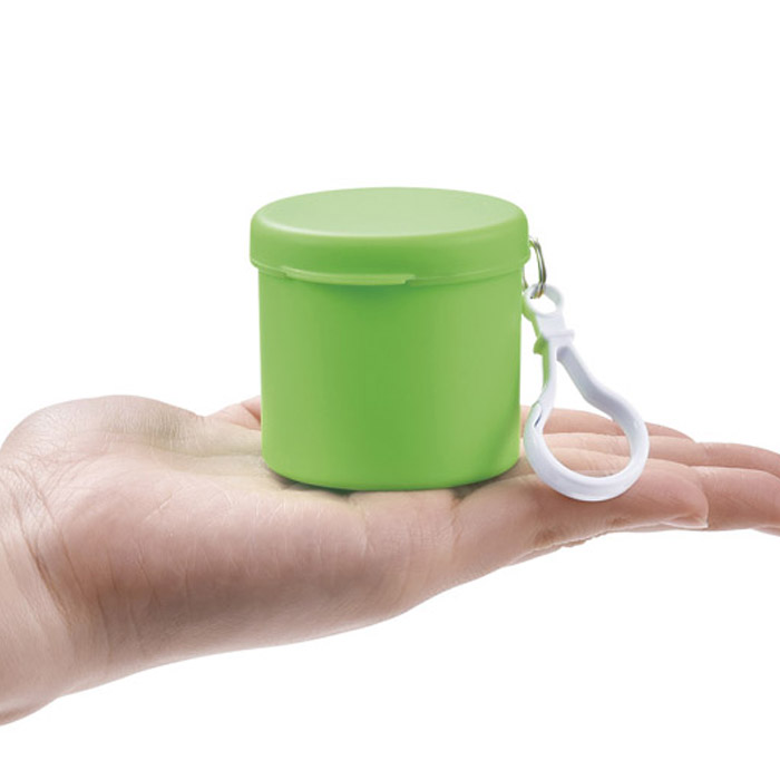 梅雨に備える、豪雨に備える。直径55cmの超コンパクトサイズのカプセルの中にレインポンチョをセットしました。携帯に便利なフック付きで、屋外のイベントなどでの急な雨もこれで安心です。