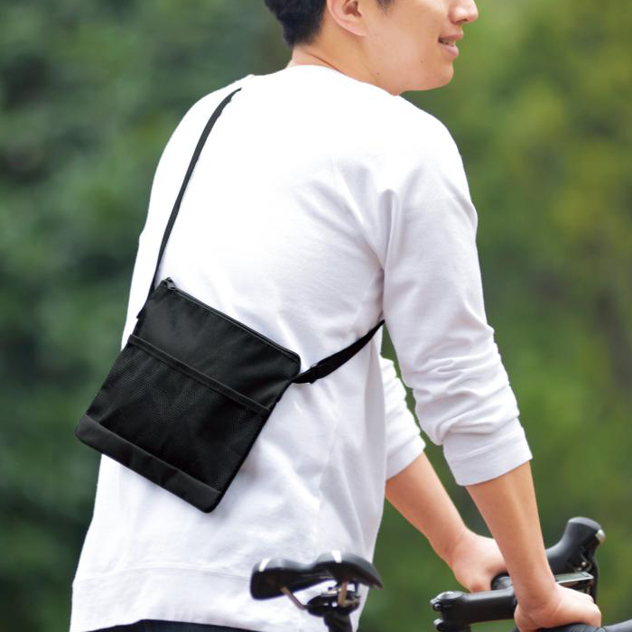 全世代にフィットする、シンプル&スマートなサコッシュ。サイクリングや野外活動、身軽にお出かけしたい時の相棒に。前面には素早く取り出したいスマホやICカードの収納にぴったりのメッシュポケット付。