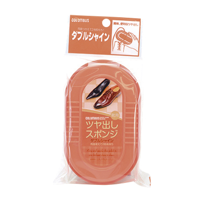 お手軽簡単靴磨きスポンジ。サッと拭くだけで簡単にツヤが出る、両面使えて経済的なスポンジタイプの靴磨きです。無色なのでどんなお色の靴にも使えます。