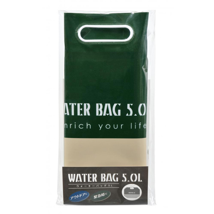貯水・給水に便利!アウトドアや断水・災害時などに。5Lの大容量。使わない時は薄くたたんでおけるので防災リュックの中でもかさばりません。いざという時の防災対策グッズは景品やノベルティとしてオススメです。