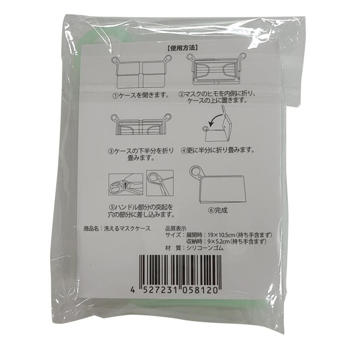 煮沸消毒できる、画期的なシリコン製マスクケース!開いたケースにマスクを置いてパタンと閉じて使用します。厚さ1.5cm/重量30g(※必ず現品でご確認ください)でポストインに最適。