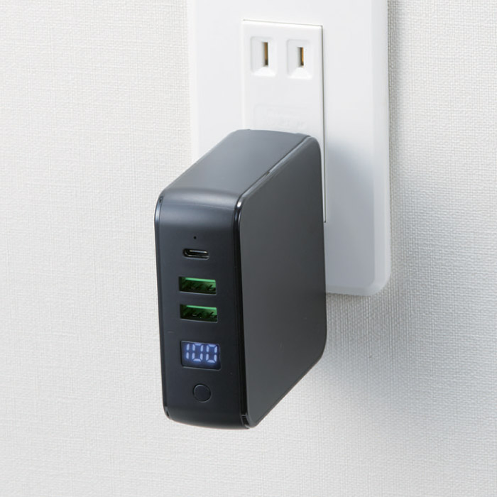 モバイルバッテリーは仕様や容量を選んで使い分ける時代!ワイヤレス充電もできるAC充電器一体型バッテリーです。折りたたみACプラグ付・USBポート×2・Type-Cポート(入出力)×1。