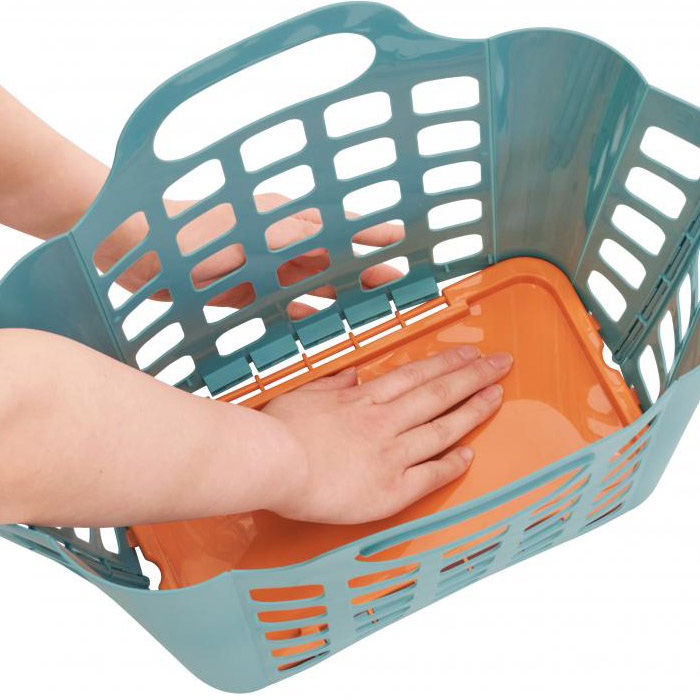 たたむとわずか4cm!すきまに収納できるバスケット。使う時は底板を敷いてしっかり自立します。各種景品や販促品としてオススメです。