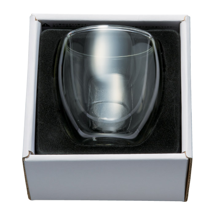 飲み頃温度をキープできるおしゃれなダブルウォールグラス。保冷保温に優れているので飲み頃温度が長く保たれます。温かい飲み物を注いでもグラスの外側は熱くなりすぎません。冷たい飲み物を注いでも結露せずテーブルを濡らしません。高級感のあるギフトボックス入り。各種景品や販促品としてオススメです。