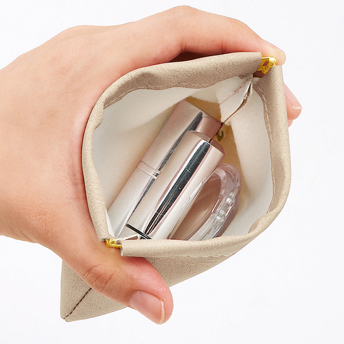 コスメやサプリ、小銭などの小物入れに最適。開閉部の両サイドを押すだけで開くことができる扱いの手軽さがポイントです。各種景品や販促品としてオススメです。