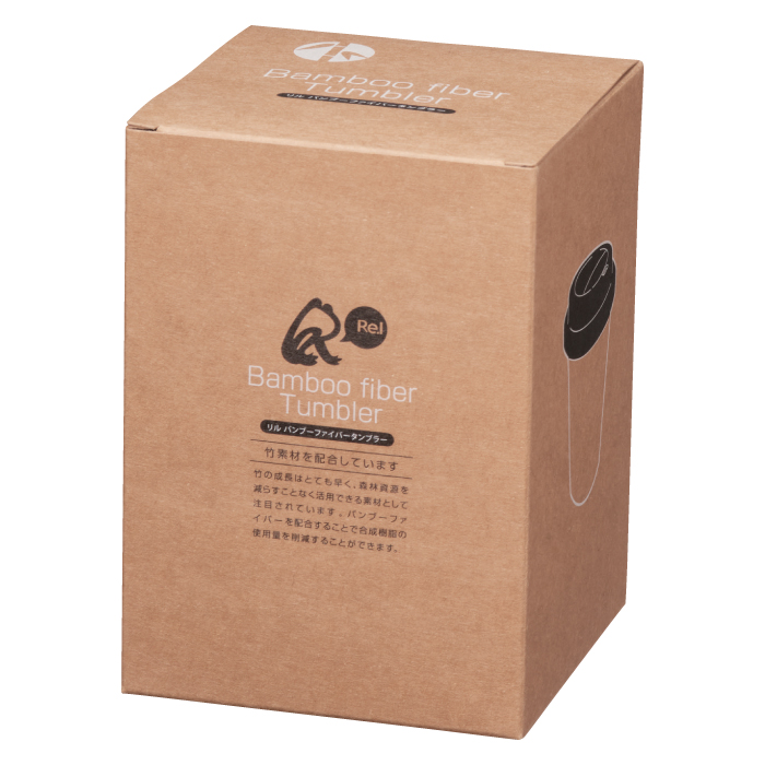 環境にやさしい竹繊維配合のタンブラー。家庭やオフィスでも使い勝手の良い蓋付仕様。クラフト化粧箱入で環境意識の高さをアピール。ナチュラル素材を活用するエコな販促グッズです。