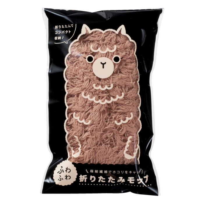 折りたたみ式でコンパクトになるモップ。目を引くかわいいアルパカのパッケージ。ふわふわの毛足が細かいほこりのお掃除にも便利。各種景品や販促品としてオススメです。