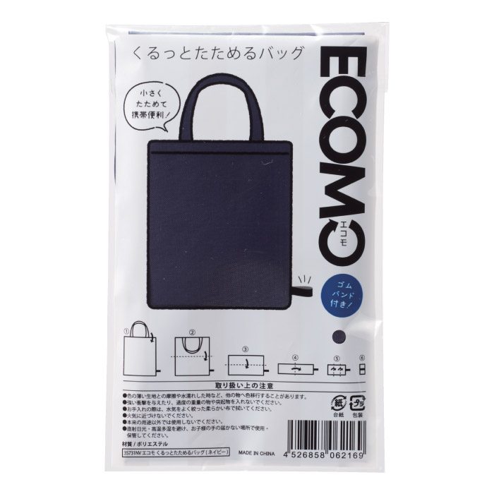 スタンダードなお手頃価格のショッピングバッグ。ゴムバンド付なので小さくたためて収納便利。色指定ができるので名入れと相性のいい商品です。各種景品や販促品としておすすめです。