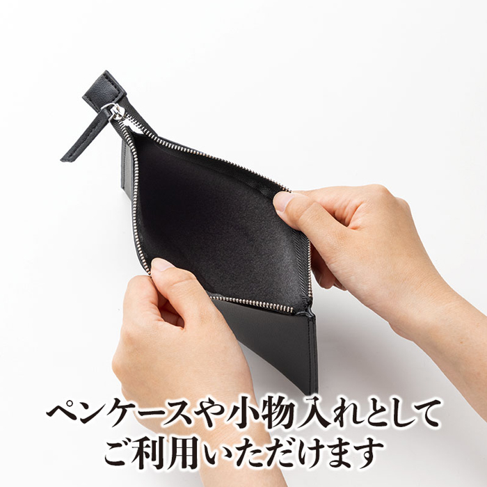 シンプルデザインで、使う場所・人を選ばないペンポーチです。上質な合皮製で、高級感があります。ビジネスシーンを中心に、記念品・贈答品としてもご活用ください!シルバーやゴールドで名入れをすると、高級感がより一層アップするため、おススメです。長3封筒で郵送も可能です。