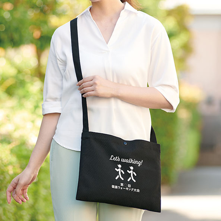 A4サイズも入る、シンプルで便利なサコッシュ。オリジナル印刷を入れれば、ノベルティ・販売品として需要の高い仕様です
