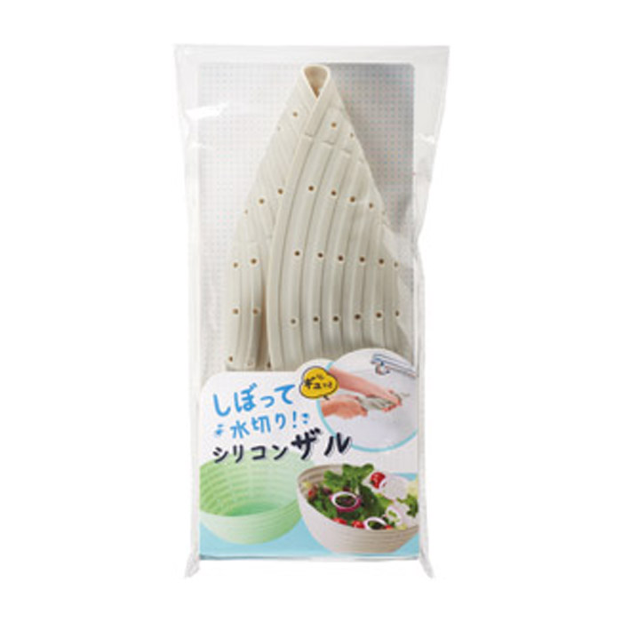 シリコン製であることを活かした多機能ザル。柔らかいからそのまま絞って水切りができます。他にも皮むきやフードカバー等、使い道さまざま。主婦向けの景品や販促品としてオススメです。