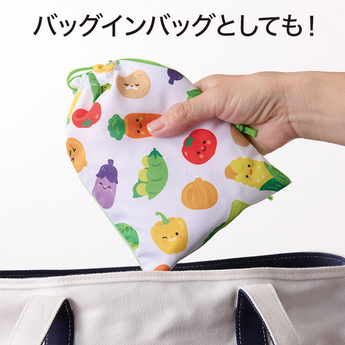 「食育」「食生活改善普及運動」等、食にまつわるイベント・プロジェクトでご活用いただきたい、かわいい野菜柄の巾着です。コップ&歯ブラシ、ハンカチ&ティッシュ等を持ち運ぶのにぴったり♪ひもでカンタン開閉、非使用時はかさばらないのも、巾着袋の嬉しいポイント。バッグインバッグとして使っても便利です。長3封筒への封入も可能なので、DM開封率アップの決め手にもなります。実用性も高く、手にした人の印象は◎イベント参加記念品や、応募特典等に是非、ご利用ください。近年、日本人の野菜摂取量が、摂取目標量を大きく下回っており、農林水産省が「野菜を食べようプロジェクト」で、野菜の消費拡大を訴えています。8月31日は「野菜の日」です!「食」に関わるすべてのみなさま、各種イベントでの本商品のご活用、是非ご検討ください。