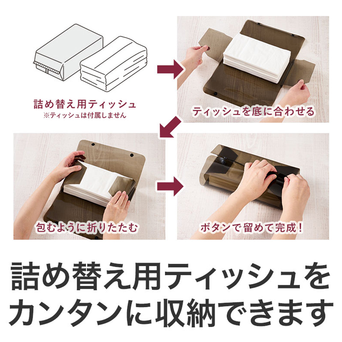キッチンやレジャーなどの水場でも使えるティッシュケース。名入れをすれば、長く販促効果が続きます。各種景品や販促品としておすすめです。PAT.P。