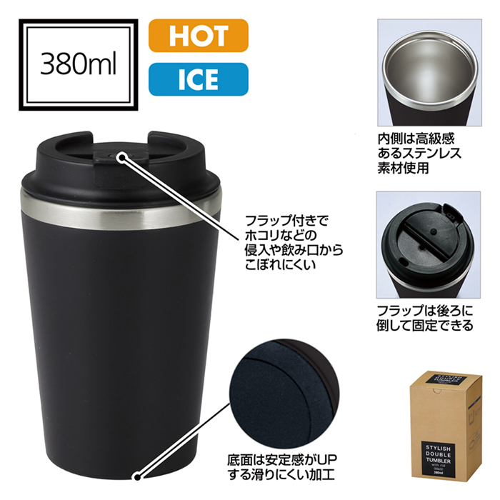 スタイリッシュ二重構造タンブラー 蓋付 ブラック |