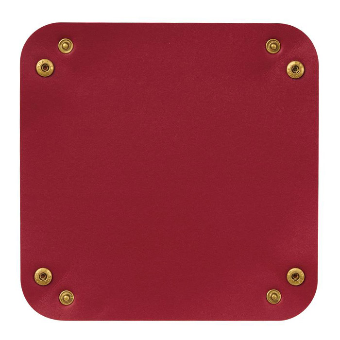 レザー調の生地にアンティークゴールドのボタン。程よくカジュアルダウンされたシンプルなボタントレーです。鍵や腕時計の指定席に。納品時はフラットな状態なのでお渡し時や発送時もかさばりません。素押しでの名入れがおすすめです。