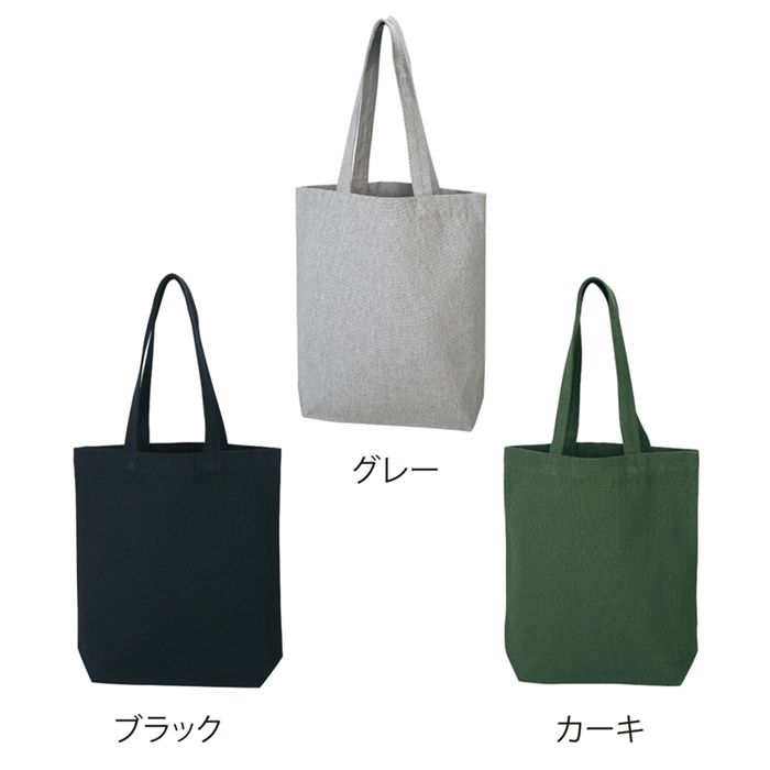 商品の製造過程で廃棄された綿のくずなどから作られた、リサイクルコットン生まれのSDGsに特化したトートです。名入れが映えるシンプルなデザイン、ユニセックスで使えるカラーばかりなので、長く広く使っていただけます。バッグは定番人気の販促品だからこそ、おしゃれで印象に残るものを選ぶことでプロモーション効果も期待大。企業や会社の販促品・ノベルティでお困りの場合、おしゃれで安いオリジナルのものをご提案します。リサイクル素材の特性上、組成・風合いに個体差が生じ、違う色の繊維が混じることがございます。
